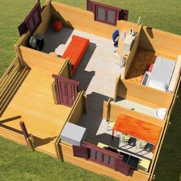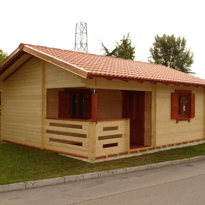 Madera abeto nórdico laminar de 100 mm, tratada al autoclave y con sistema mecánico de compensación de movimientos. Aislante térmico en cubierta 100 mm, cerramientos en PVC blanco con puente de rotura térmica y climalit 4-16-4. Cubierta impermeabilizada con tégola asfáltica, suelo de madera con tarima flotante AC5, color a determinar por el cliente en nuestra amplia carta de colores lasur al agua.